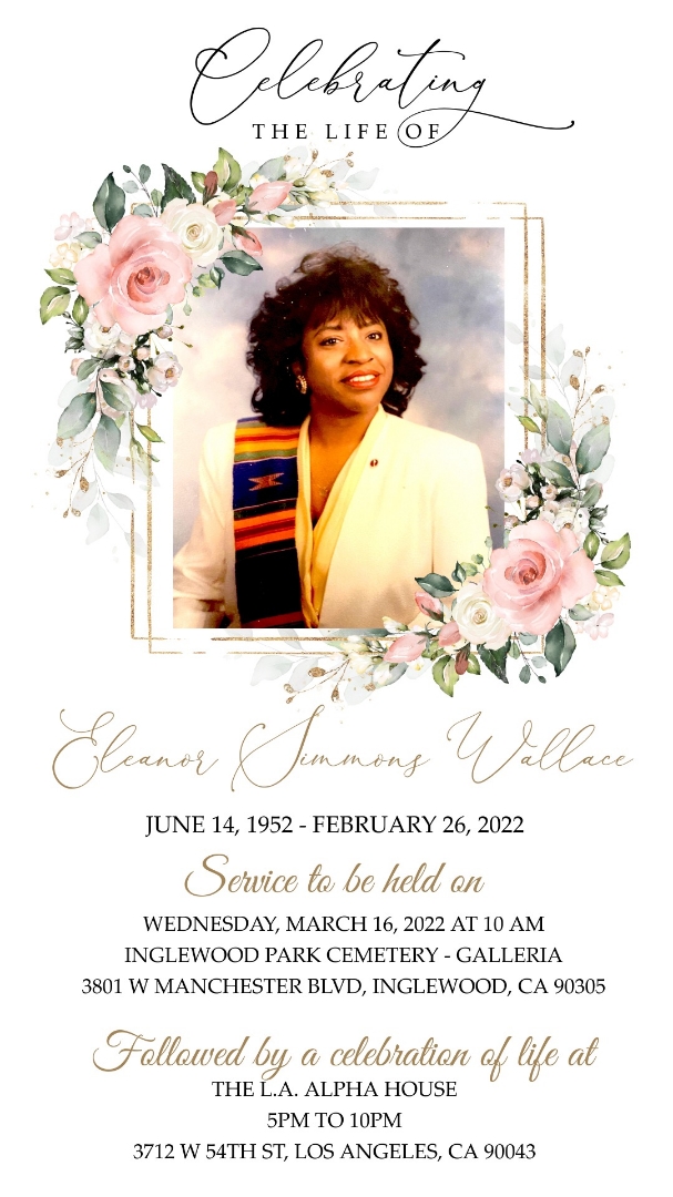 It is with a heavy heart that the Mu Lambda Omega Chapter of Alpha Kappa Alpha Sorority, Incorporated® announces the passing of our beloved Soror Eleanor Wallace.